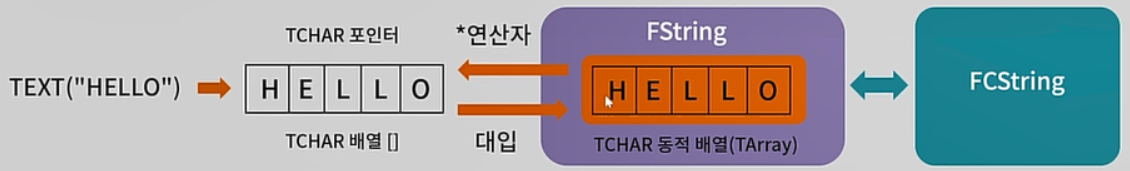 FString LogCharString = LogCharArray; // 문자열을 자유롭게 조작하고 싶다면, TCHAR 배열 대신 FString을 사용해야 함. FString은 TCHAR 배열을 포함하는 헬퍼 클래스.