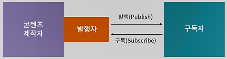 제작자와 구독자는 서로를 몰라도 발행자를 통해 컨텐츠를 생산하고 소비할 수 있음.(느슨한 결합)