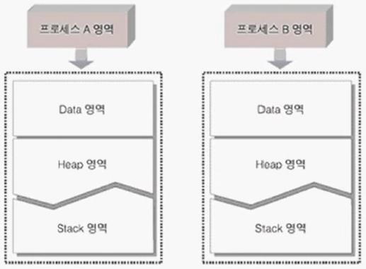 프로세스별로 아래 그림과 같이 완전히 분리되어 있기 때문.