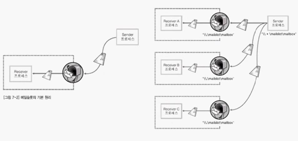 마찬가지로, 리시버 프로세스가 메일 슬롯에 데이터를 넣는다고해서