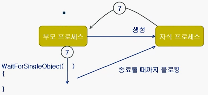 즉, 자식 프로세스의 연산결과를 받기 위해서 WaitForSingleObj() 함수를 씀.