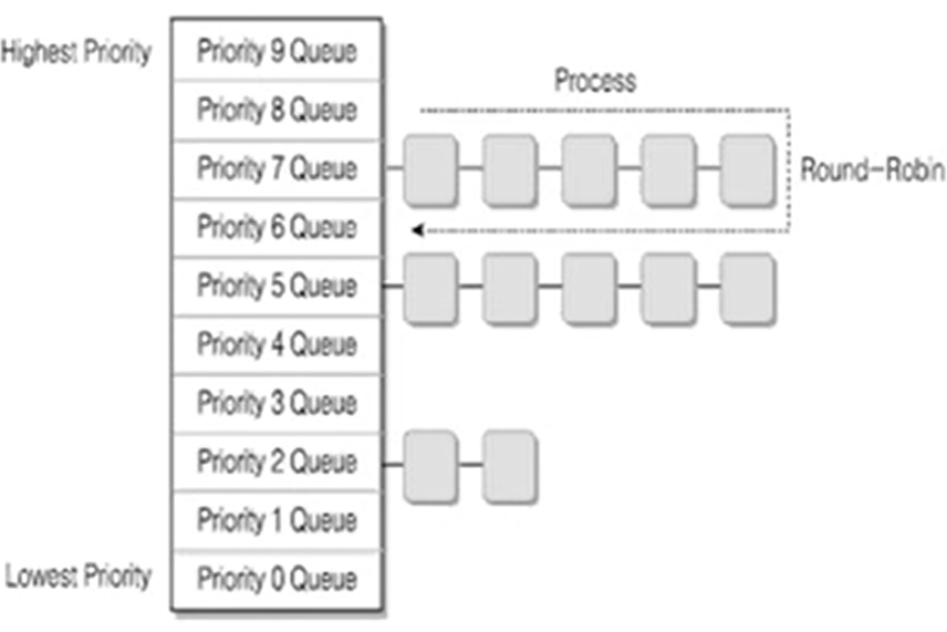 - 일단 각 순위마다 우선순위 Queue가 있음. 예제그림에선 10 순위.
