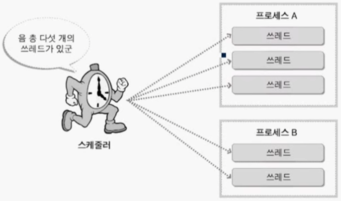- 즉, 스케줄러가 "쓰레드 단위"로 스케줄링을 해줌.