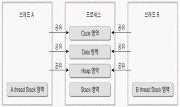 Note) 과격하게는 "프로세스는 쓰레드를 담고 있는 껍질에 지나지 않는다."고도 함.