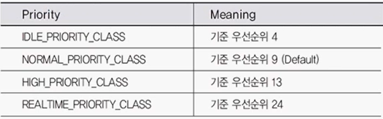 프로세스의 단위에서 우선순위 클래스를 가짐.