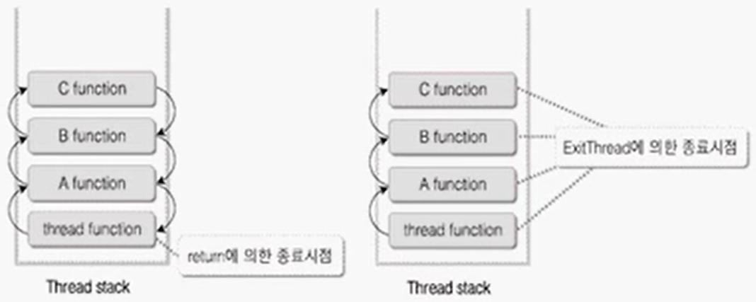 - 다만 ExitThread()은 안쓸거라, _endthreadex도 사용할 일이 없음.
