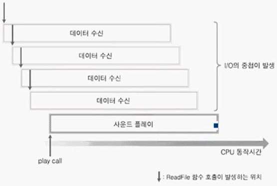 이런 경우를 동기 IO라고 함. 그래서 IO가 끝나야만 플레이하고 IO를 해야지만 플레이 또 가능.