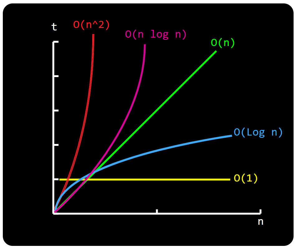 Note) 빅오 표기법별 데이터 개수와 연산 시간의 그래프